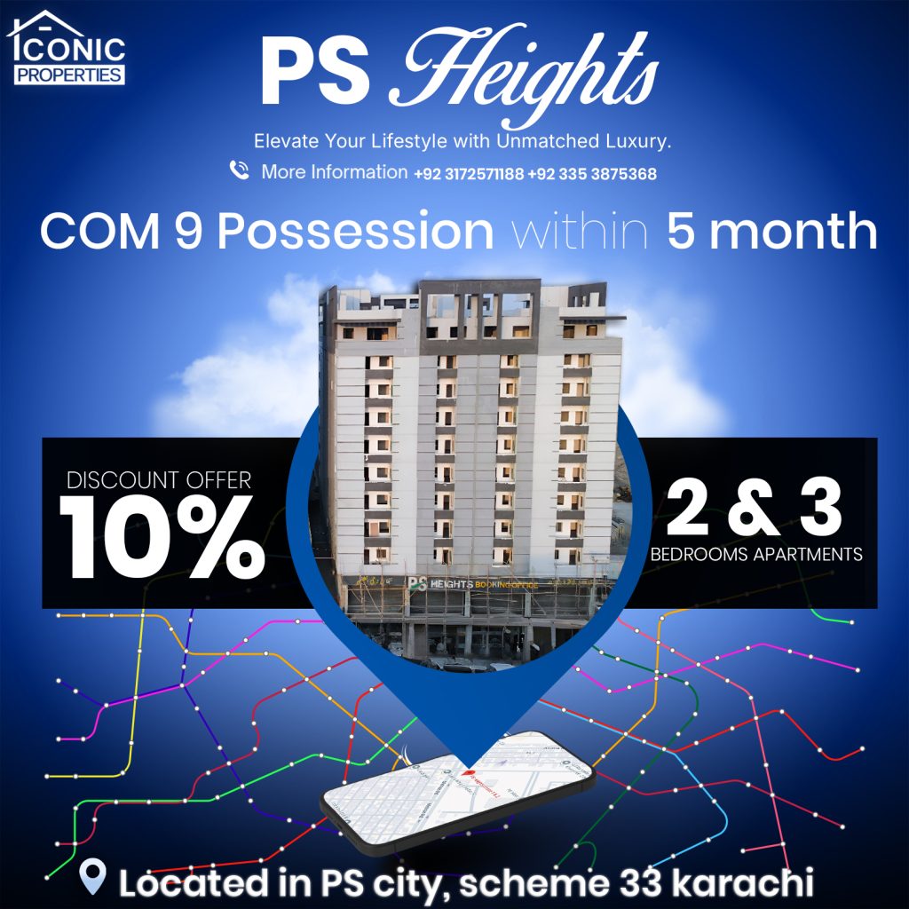 PS Heights COM-9 & COM-10 – Luxury Apartments in the Heart of Scheme 33, Karachi
